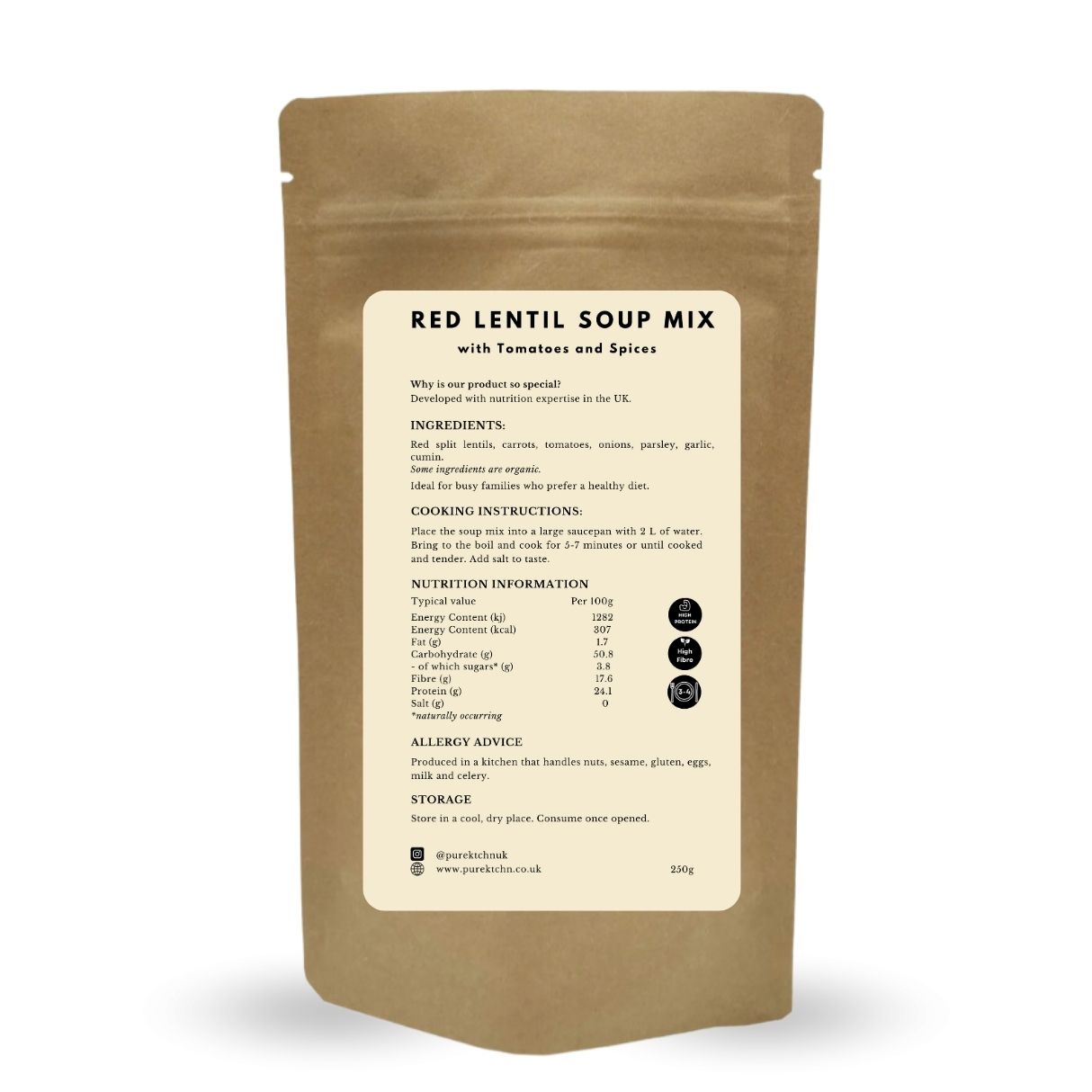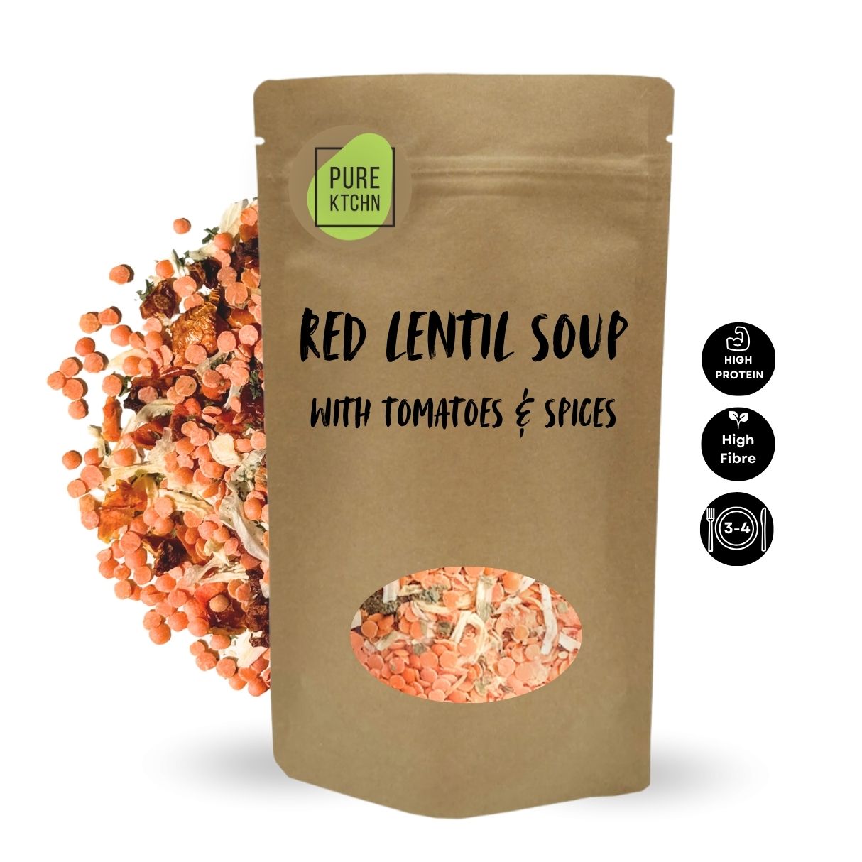 A rich red lentil soup base blended with tomatoes, vegetables and warming cumin. Designed for busy evenings when you need something real, filling and fast.